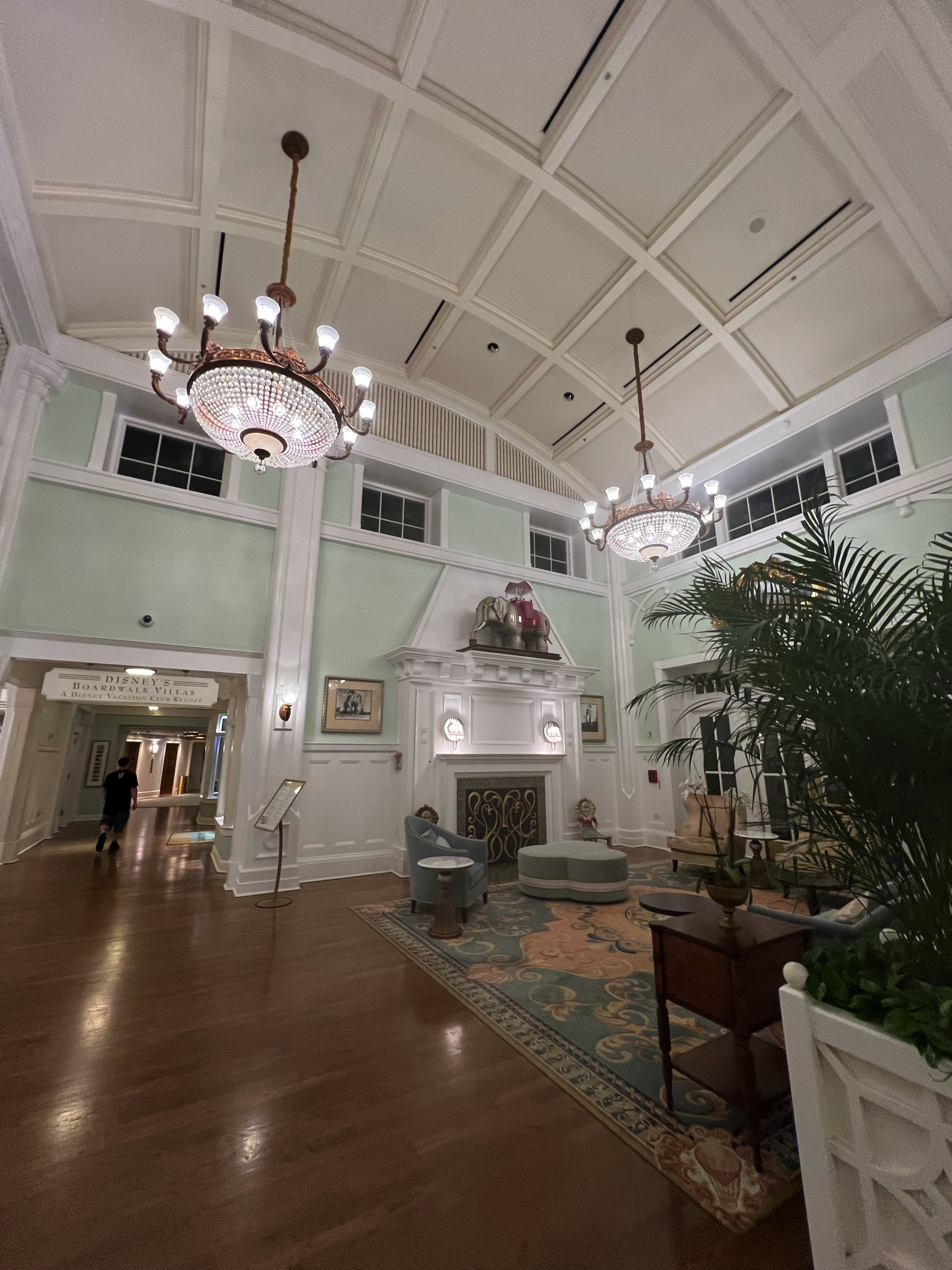 I haven’t even spoken about the restaurants, snack shops, bars, ice cream shops, retail shops or quiet areas to sit and enjoy… At the Value Resort, we had one option for a cafeteria and two pool bars. At Boardwalk, we ate at a different spot every meal. We popped into the Carousel Coffee for lattes and hot chocolate and a butter croissant in the morning, Cake Bake Shop for desserts, got a Margarita and Pizza on the Boardwalk late at night and an ice cream one afternoon. We watched live music on the Boardwalk coming back from the parks in the evening, saw a movie on the lawn and when we wanted quiet, we had a zillion options for little sitting areas all over the hotel. Even the Lobby had tons of couches and the balcony beyond the lobby had rocking chairs to chill in. Calm and quiet live here and I’m here for it.