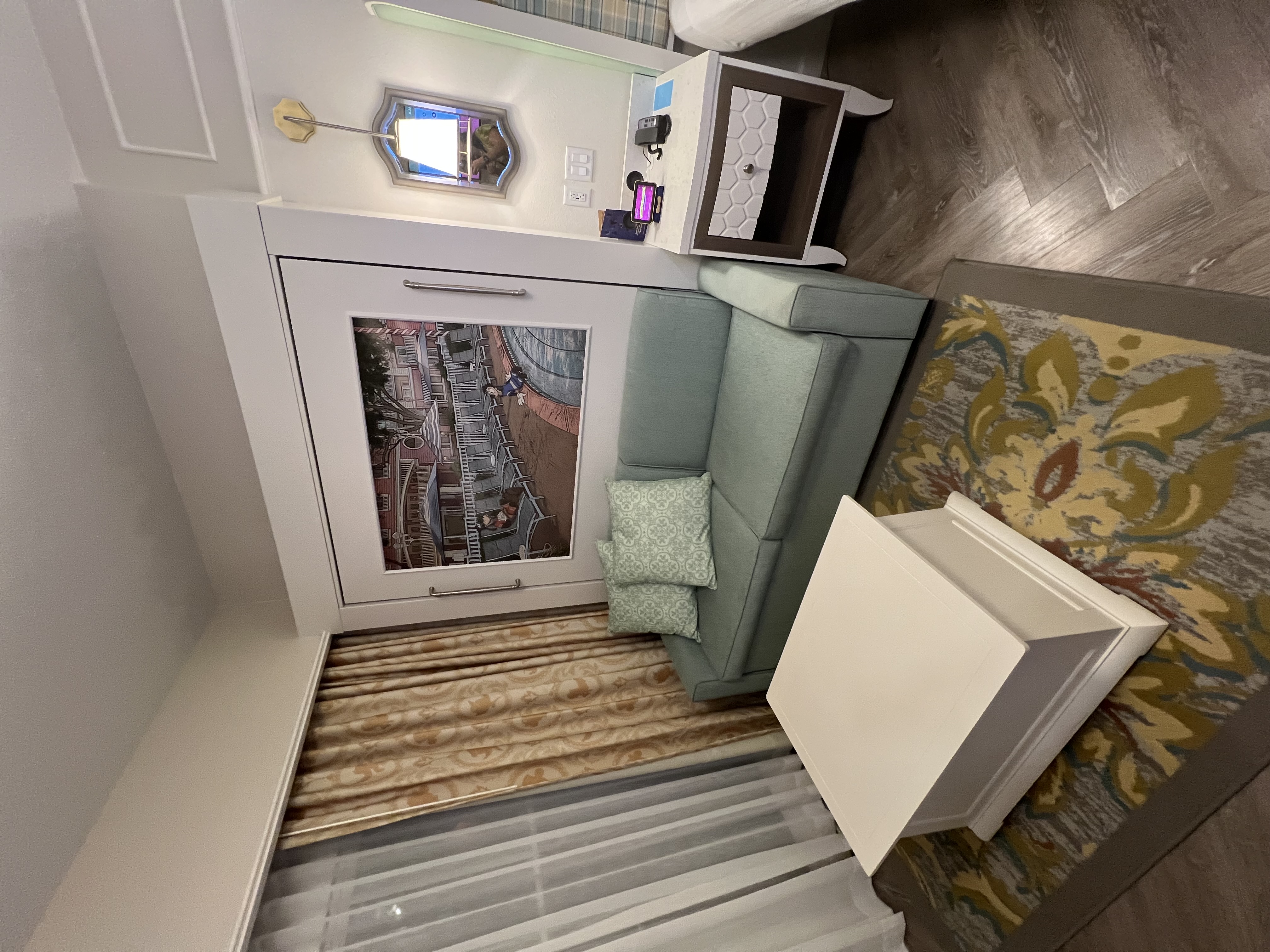 Weighing the experiences, I’m glad I could compare them back to back. I know that you CAN have a larger room with a sitting area and a split bathroom which allows more than 1 person to get ready at a time. There are rooms where you can open your patio door, get fresh air or sit on the balcony and actually relax for a few minutes in the morning with your coffee.